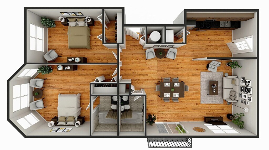 2 Dormitorios, 2 Baños, 952 pies²Disponible AhoraGalería del Modelo