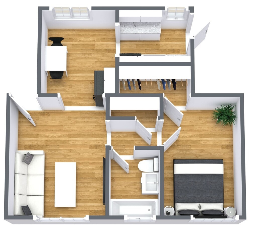 1 Dormitorio, 1 Baño, 750 pies²Disponible January 29, 2026Galería del Modelo