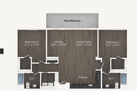 1 Dormitorio, 1 Baño, 701 pies²Disponible AhoraGalería del Modelo