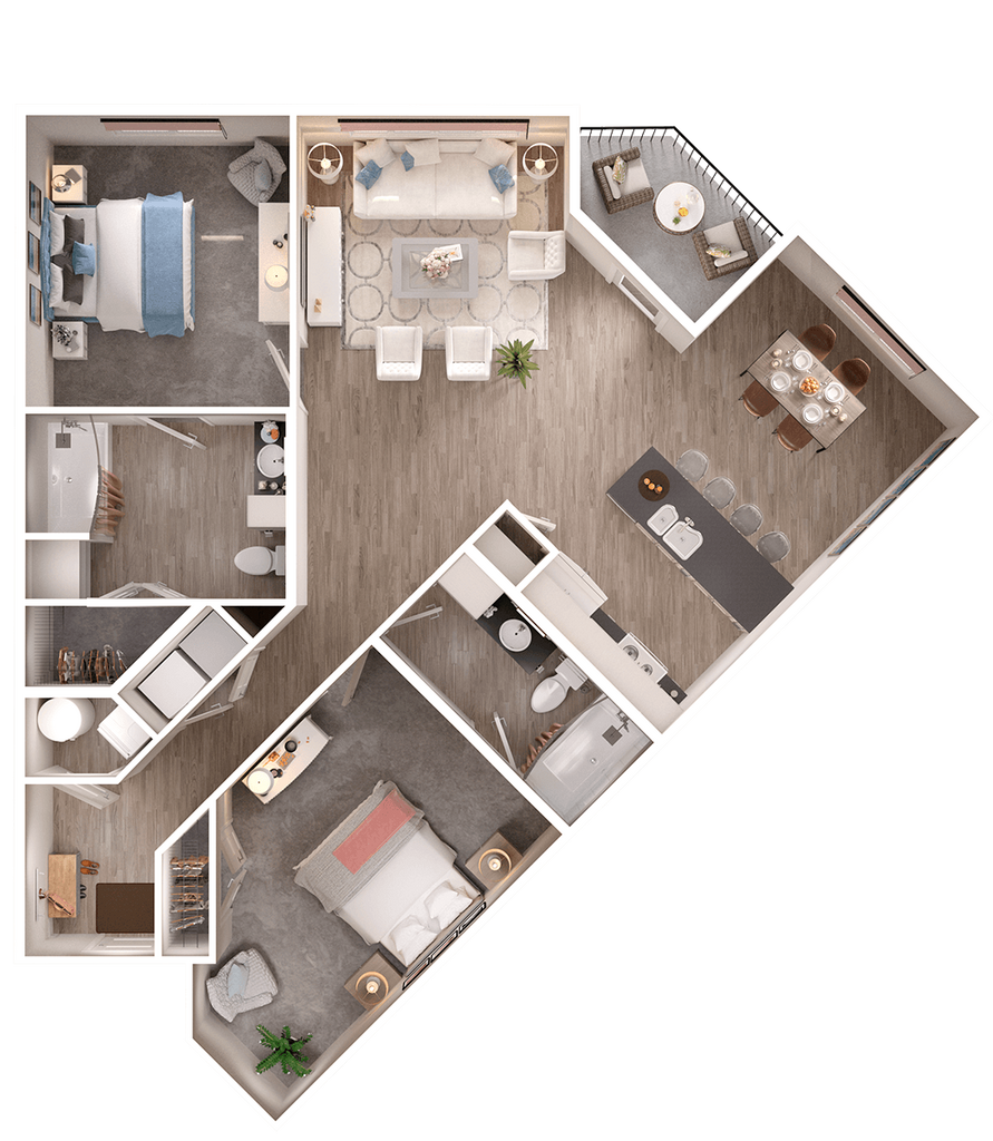 Modelo de apartamento: A2Desde $1,6051 Dormitorio, 1.5 Baños, 996 sq ftDisponible Ahora![]()