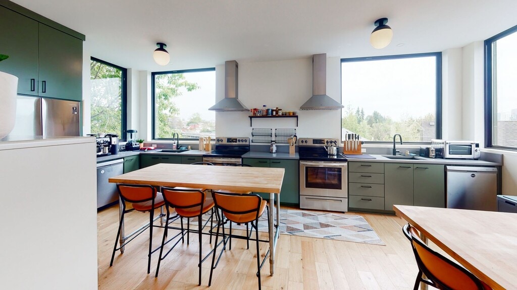 The Outpost ofrece la mejor comunidad de coviviente de Portland, OR. The Outpost es una innovadora comunidad de viviendas urbanas que consta de una casa unifamiliar de 4 dormitorios, construida originalmente alrededor de 1890, y un moderno edificio adyacente de 12 dormitorios. The Outpost cuenta con una mezcla de estudios con baños compartidos y privados, un piso abierto completo totalmente amueblado y espacios comunes que incluyen una gran cocina común con cubiertos abastecidos, electrodomésticos y platos que a cualquier cocinero le encantarían. Los comedores y las salas de estar están amueblados pensando en la vida conjunta y ofrecen un amplio espacio para organizar una cena. El Outpost ofrece vistas espectaculares desde los pisos 2 y 3, con abundante luz natural. Relájate al final del día rodeado de tus nuevos compañeros de casa.
