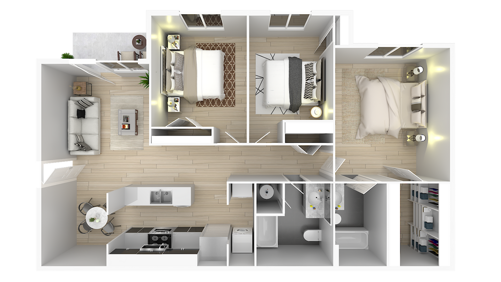 Modelo de apartamento: The CheathamLlame para Precios3 Dormitorios, 2 Baños, 1029 sq ftNo DisponibleThe Cheatham - Plano 1