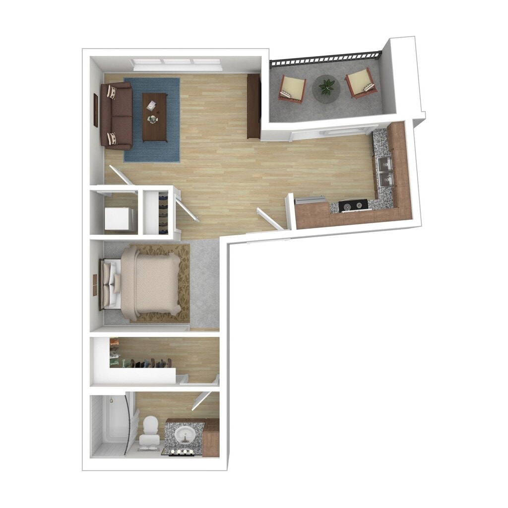 Modelo de apartamento: A1Desde $1,4251 Dormitorio, 1 Baño, 721 sq ftDisponible Ahora![]()