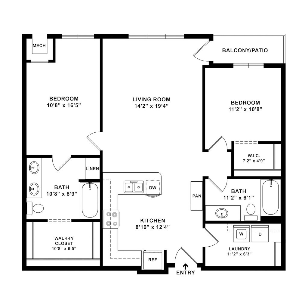 Modelo de apartamento: A3Desde $1,4501 Dormitorio, 1 Baño, 777 sq ftDisponible Ahora![]()