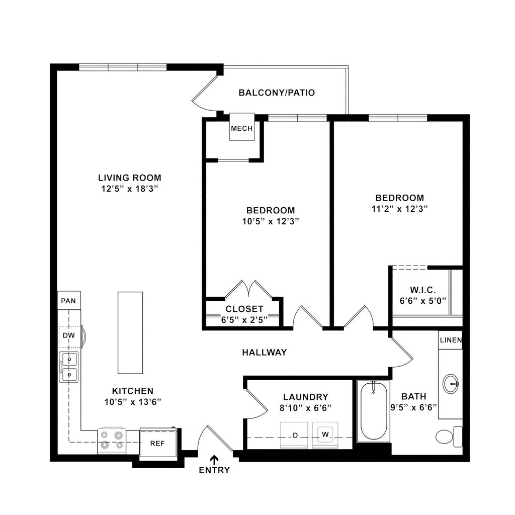 A5 - Plano 3 Unidad de apartamento: 308Modelo de apartamento: A5$1,8081 Dormitorio, 1 Baño, 849 sq ftDisponible Ahora2 Dormitorios