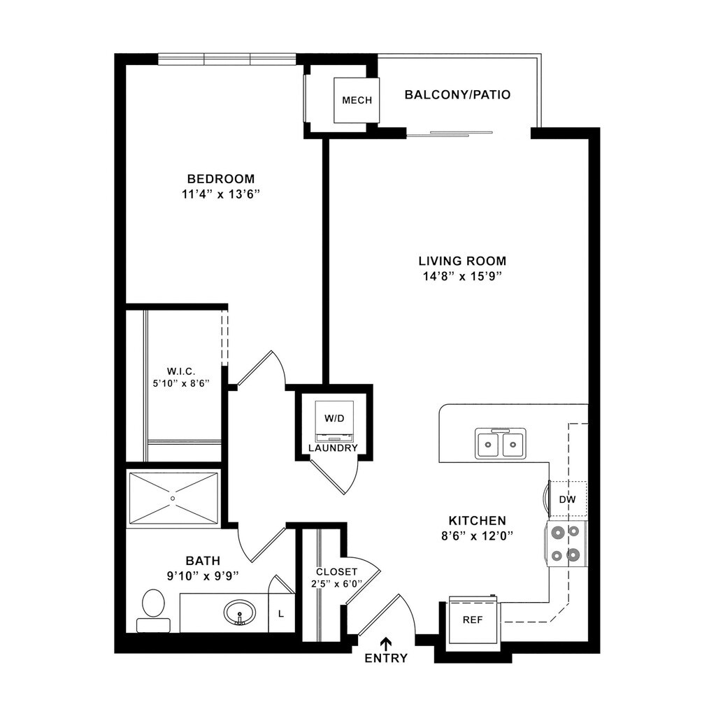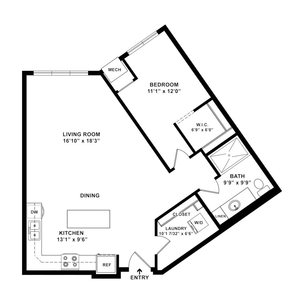 A1 - Plano 3 Unidad de apartamento: 113Modelo de apartamento: A1$1,5811 Dormitorio, 1 Baño, 721 sq ftDisponible AhoraPlano: A3