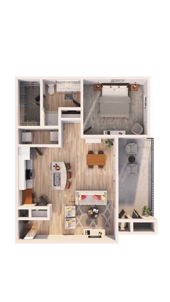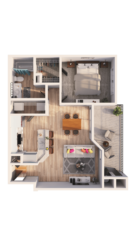 Modelo de apartamento: A1F A1GLlame para Precios1 Dormitorio, 1 Baño, 859 sq ftDisponible March 20, 2026![]()