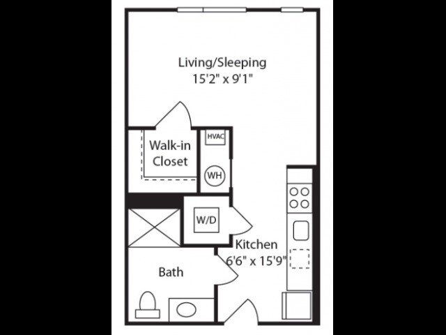 Estudio, 1 Baño, 466 pies²Precio Mensual TotalDisponible AhoraEl más grandeEsta opción tiene las unidades más grandes para este modeloGalería del Modelo