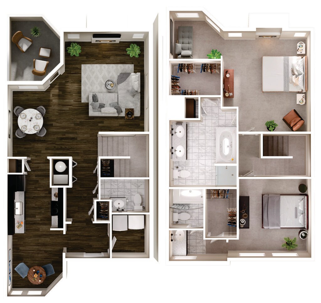 1 Dormitorio, 1 Baño, 805 pies²Galería del Modelo