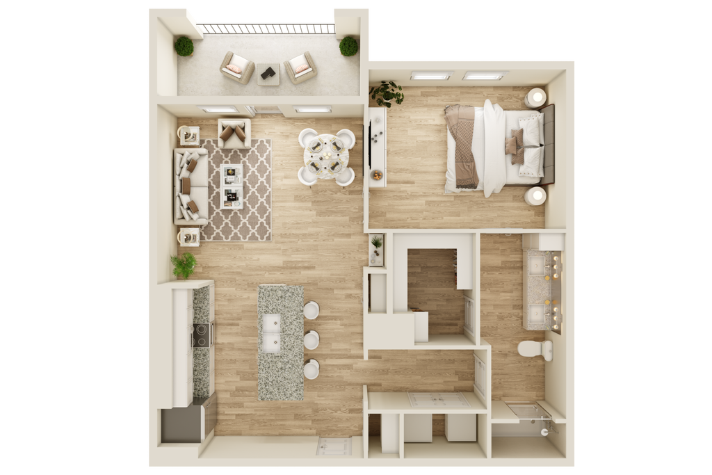 1 Dormitorio, 1 Baño, 721 pies²Disponible AhoraGalería del Modelo
