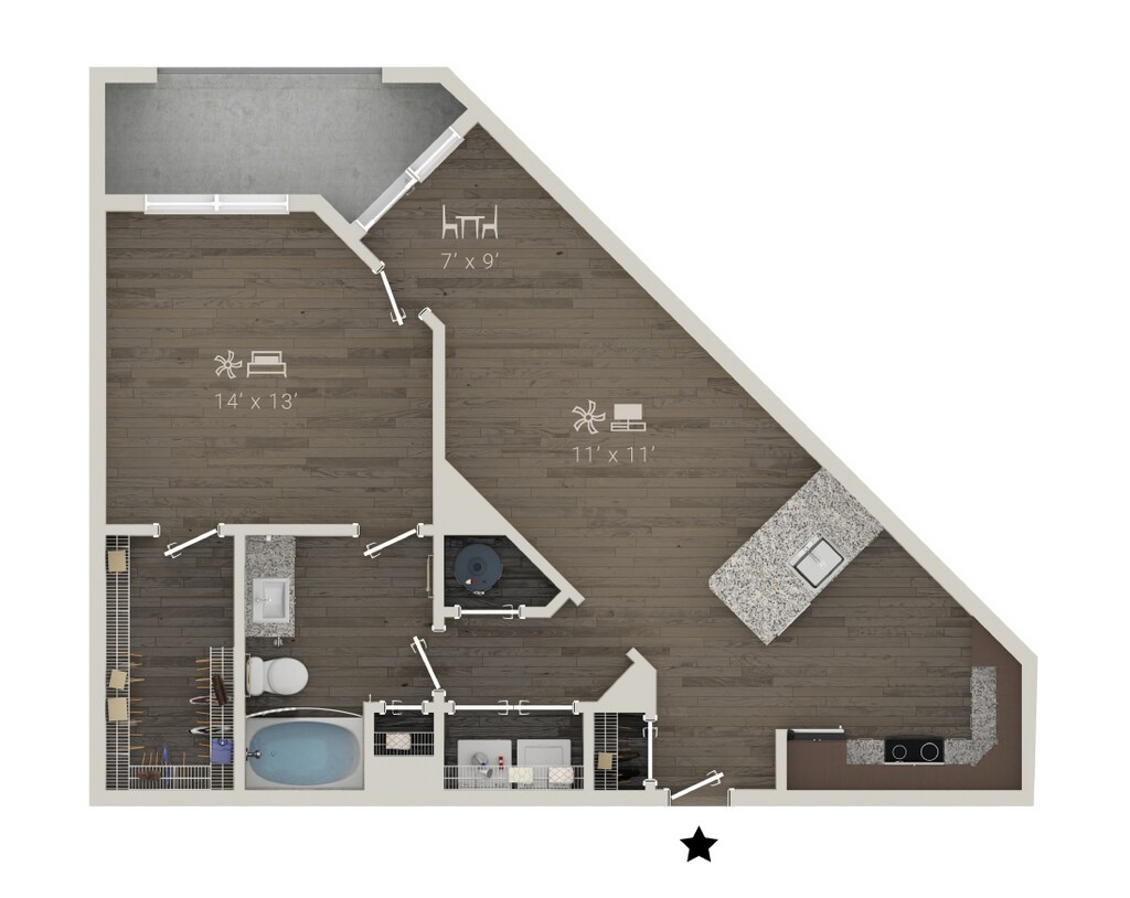 1 Dormitorio, 1 Baño, 985-1060 pies²Disponible AhoraGalería del Modelo