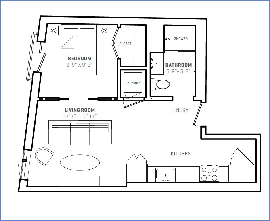 1 Dormitorio, 1 Baño, 488 pies²Precio Mensual TotalDisponible AhoraGalería del Modelo
