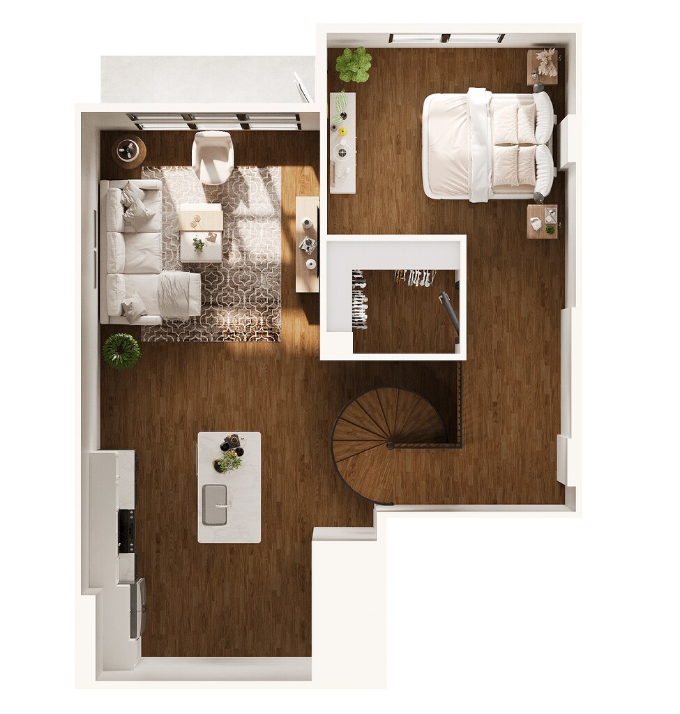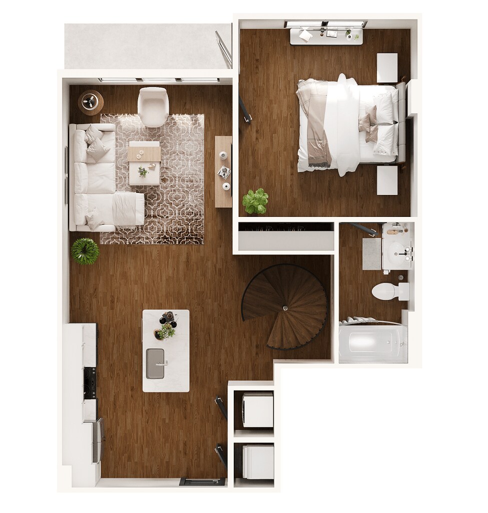 Estudio, 1 Baño, 558 pies²Disponible AhoraGalería del Modelo