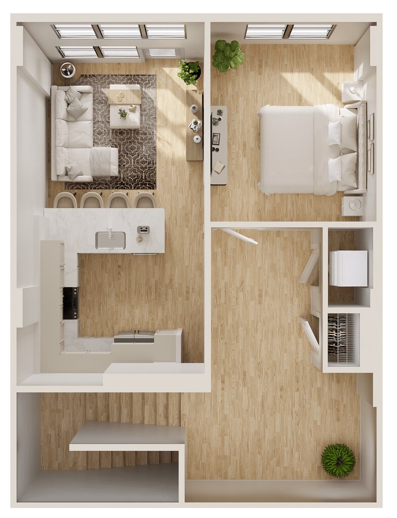 Estudio, 1 Baño, 480 pies²Disponible AhoraGalería del Modelo
