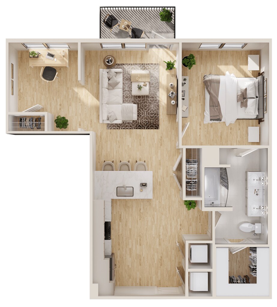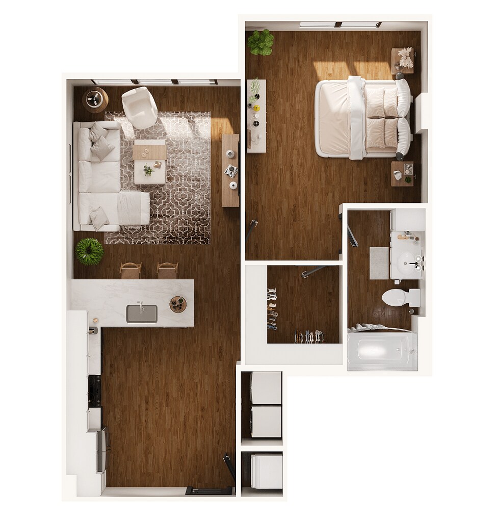 Modelo de apartamento: S1.1Desde $1,565Estudio, 1 Baño, 480 sq ftDisponible Ahora![]()