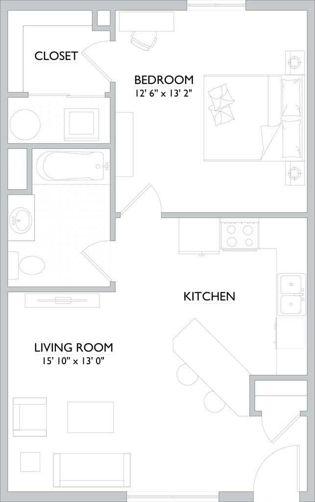 1 Dormitorio, 1 Baño, 650 pies²Disponible AhoraGalería del Modelo