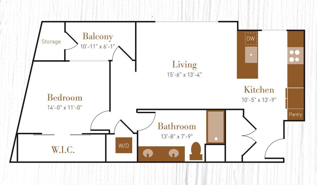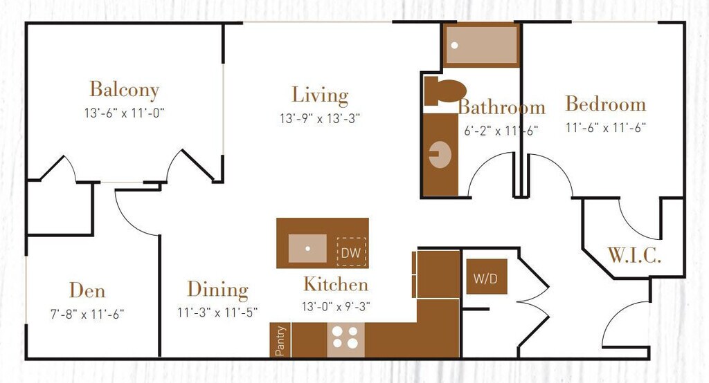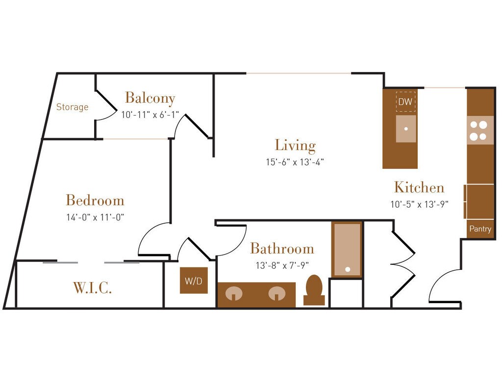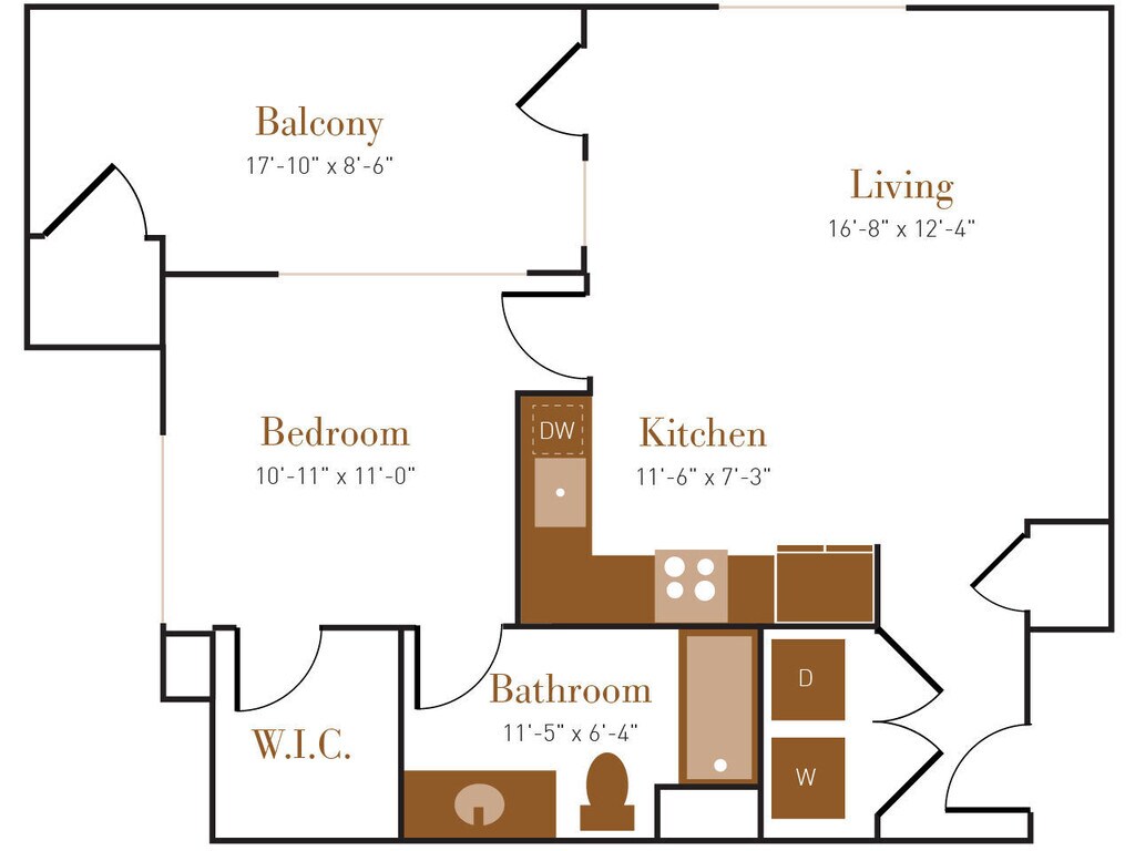 1 Dormitorio, 1 Baño, 731 pies²Disponible AhoraGalería del Modelo