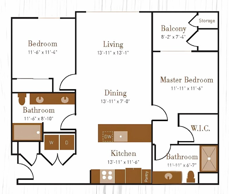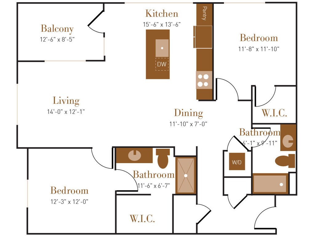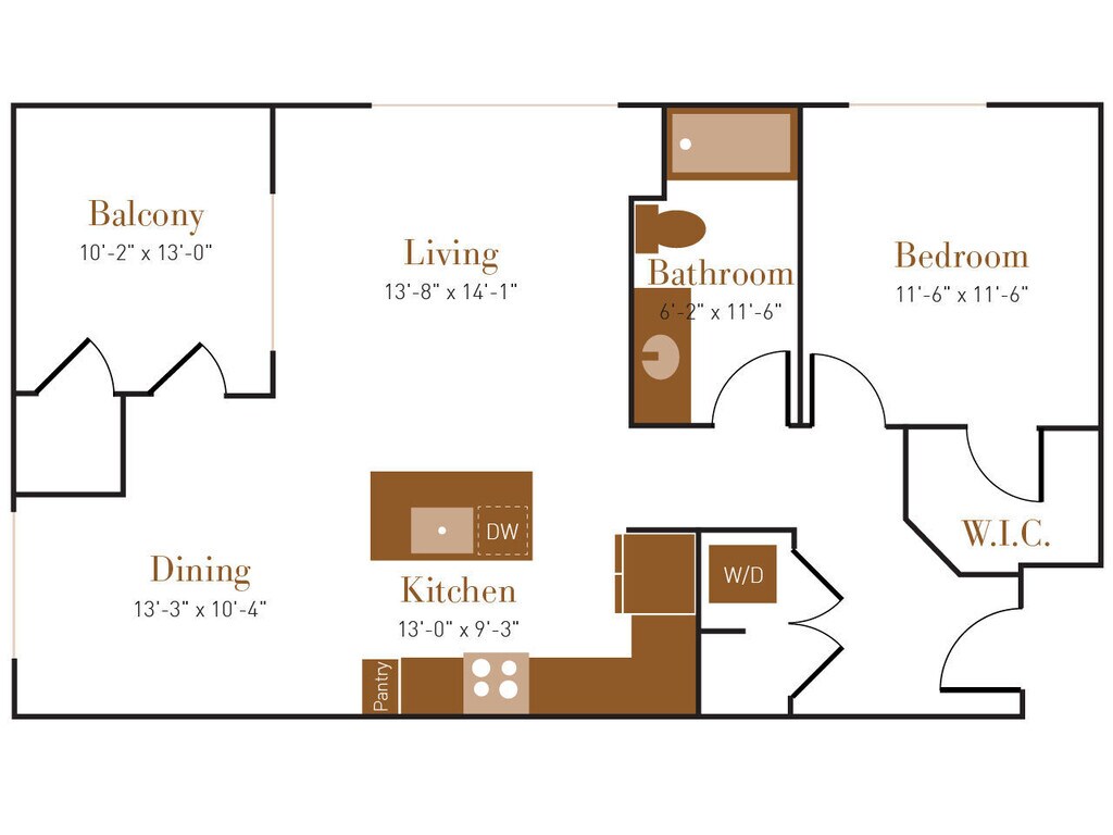 1 Dormitorio, 1 Baño, 868 pies²Disponible AhoraGalería del Modelo