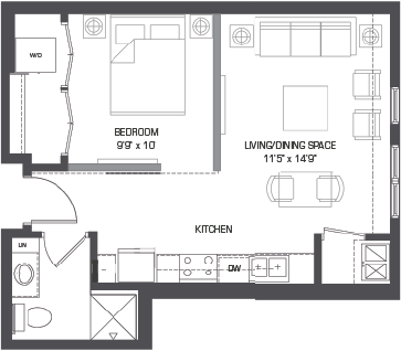 1 Dormitorio, 1 Baño, 703-712 pies²Precio Mensual TotalDisponible AhoraGalería del Modelo