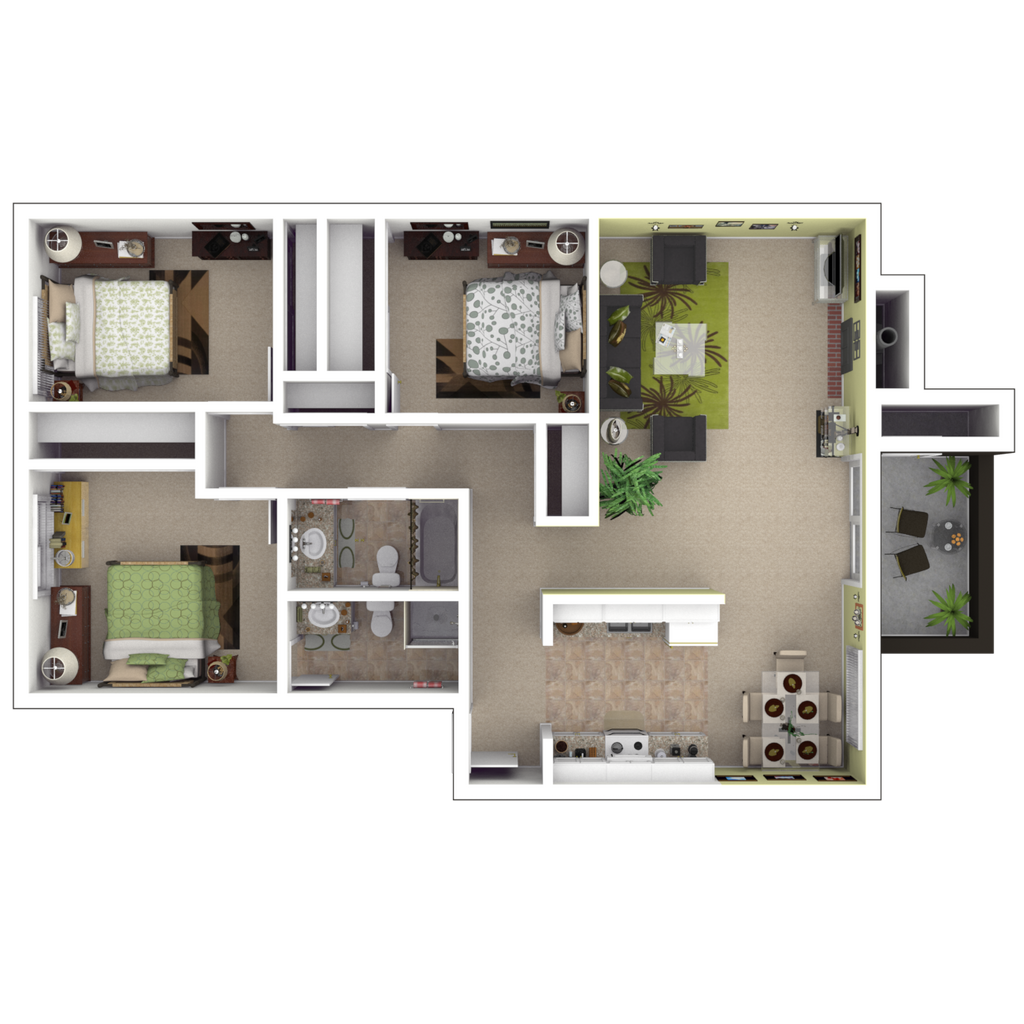 Modelo de apartamento: 3x2 1444$2,5503 Dormitorios, 2 Baños, 1444 sq ftDisponible AhoraPlanosFotos![]()