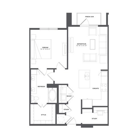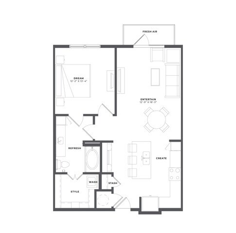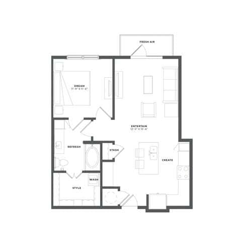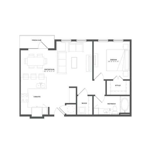 1 Dormitorio, 1 Baño, 802 pies²Disponible AhoraGalería del Modelo