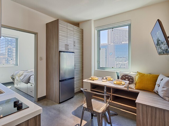 Realiza tu solicitud hoy mismo en PanoramicSoMa.com. La comodidad, la conveniencia y la vida moderna son parte de la experiencia cuando vives en Panoramic SoMa. Disfrutarás de apartamentos completamente amueblados, televisores de pantalla plana y una excelente ubicación a una cuadra de la mayoría de los mayores empleadores de tecnología de San Francisco. Estarás cerca de los lugares de vida nocturna en 11th Street y de otras comodidades en Civic Center para hacer tu vida un poco más emocionante. Programa un recorrido con nosotros (de forma virtual o en persona) y descubre tu nuevo hogar de primera mano.