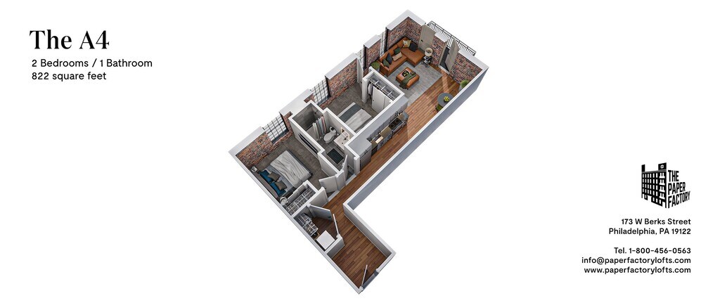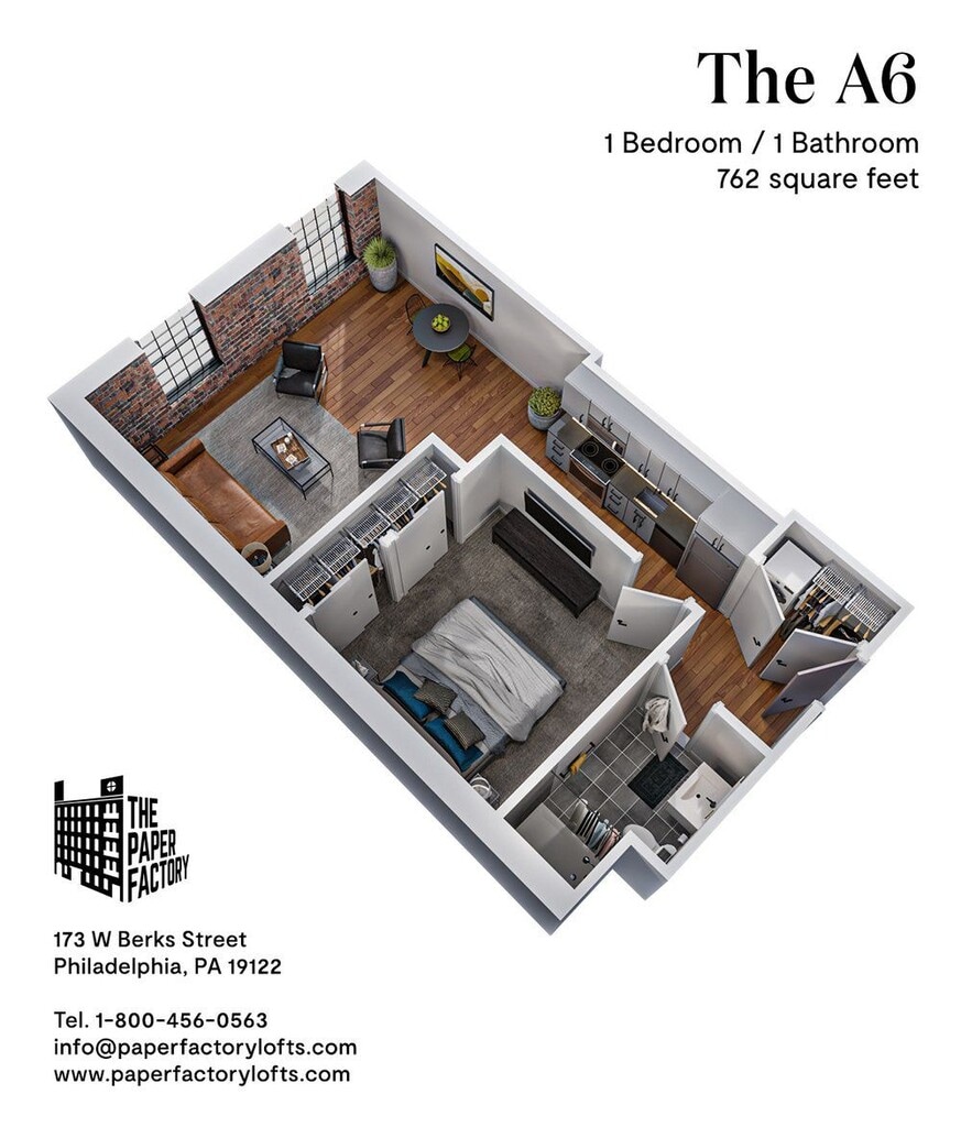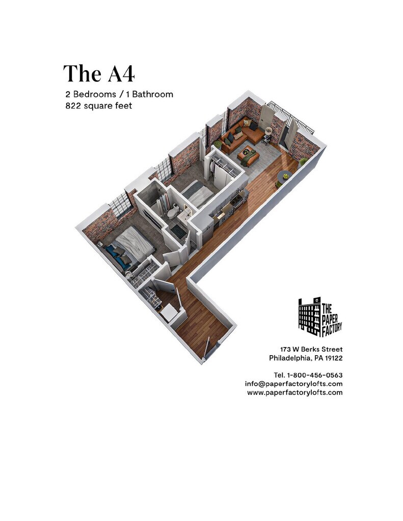 ¡Bienvenido a Paper Factory Lofts en 173 W Berks Street! Paper Factory Lofts fue construido originalmente en 1885 y sirvió como la sede corporativa de la empresa The Peter Woll & Sons. Esta fábrica histórica de ladrillos y vigas de madera hermosamente restaurada se ha transformado en 30 apartamentos de lujo nuevos y únicos. Cada apartamento fue cuidadosamente diseñado por Cecil Baker + Partners, la firma de arquitectura detrás de 500 Walnut y One Riverside, dos de las direcciones más deseables de Filadelfia. Desde estudios hasta apartamentos de dos habitaciones, cada apartamento combina características históricas originales y únicas con un diseño contemporáneo de alta gama. Cada apartamento cuenta con techos altos, electrodomésticos Whirlpool de acero inoxidable, conductos de caracol a la vista, pisos de madera noble, HVAC con control Wi-Fi, accesorios Moen de color negro mate, grandes ventanas industriales, accesorios de iluminación LED suspendidos, lavadoras/secadoras en el apartamento, iluminación debajo de los gabinetes y un amplio espacio de estar y mucho espacio de almacenaje. Paper Factory Lofts está ubicado a solo unos pasos de algunos de los restaurantes y tiendas más famosos de Fishtown. Además, la estación Berks \\"El\\" de SEPTA está a solo un minuto a pie, con fácil acceso al centro de la ciudad. Características únicas de Paper Factory Lofts: *552 a 1,312 pies cuadrados *Conversión de la histórica fábrica Peter Woll & Sons en 30 apartamentos de lujo *Características históricas originales combinadas con un diseño contemporáneo de alto nivel *Techos altos de más de 10 pies de altura y grandes ventanas industriales de estilo histórico Pella *Mantenimiento de puerta virtual y sistema de paquetes automatizado *Características de apartamento de alta gama, como accesorios Moen, Iluminación LED suspendida, Termostato HVAC con control Wi-Fi, pisos de madera noble, cañerías de caracol expuestas acceso a apartamento inteligente, gabinetes de estilo europeo de 42 in sin marco accesorios de puertas de color negro mate. *Electrodomésticos de acero inoxidable Whirlpool estándar y lavadora/secadora en cada apartamento. *Tocadores de baño flotantes y espejos iluminados *Vistas inigualables del centro de la ciudad *Todos los apartamentos tienen amplias duchas con accesorios Moen de color negro mate *Algunos apartamentos tienen balcones privados