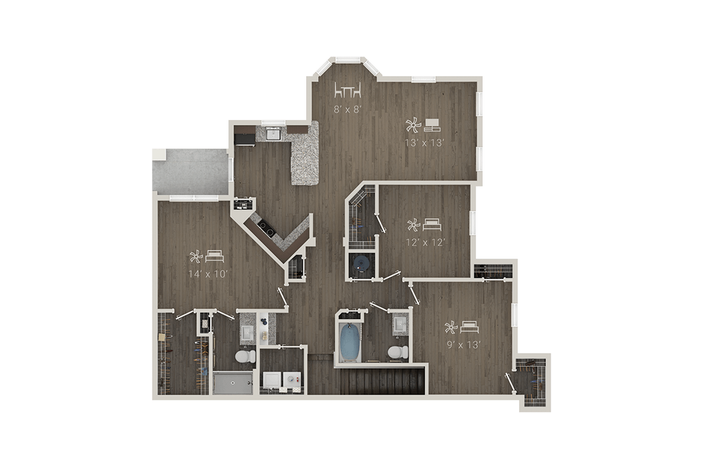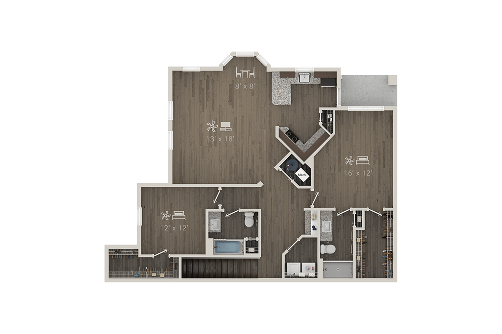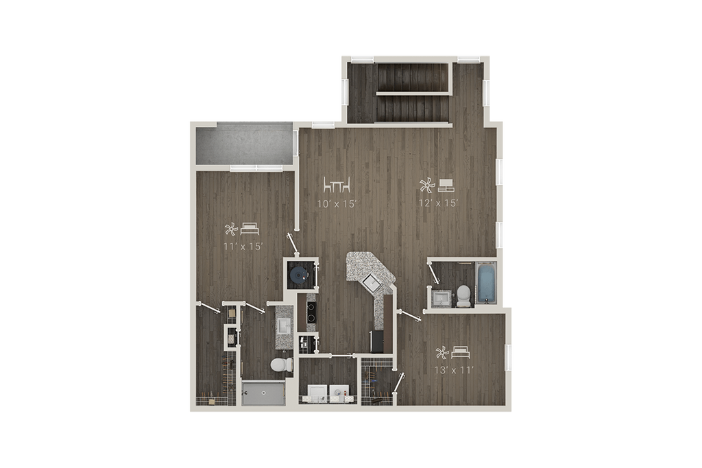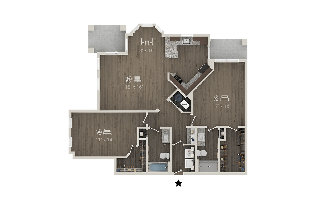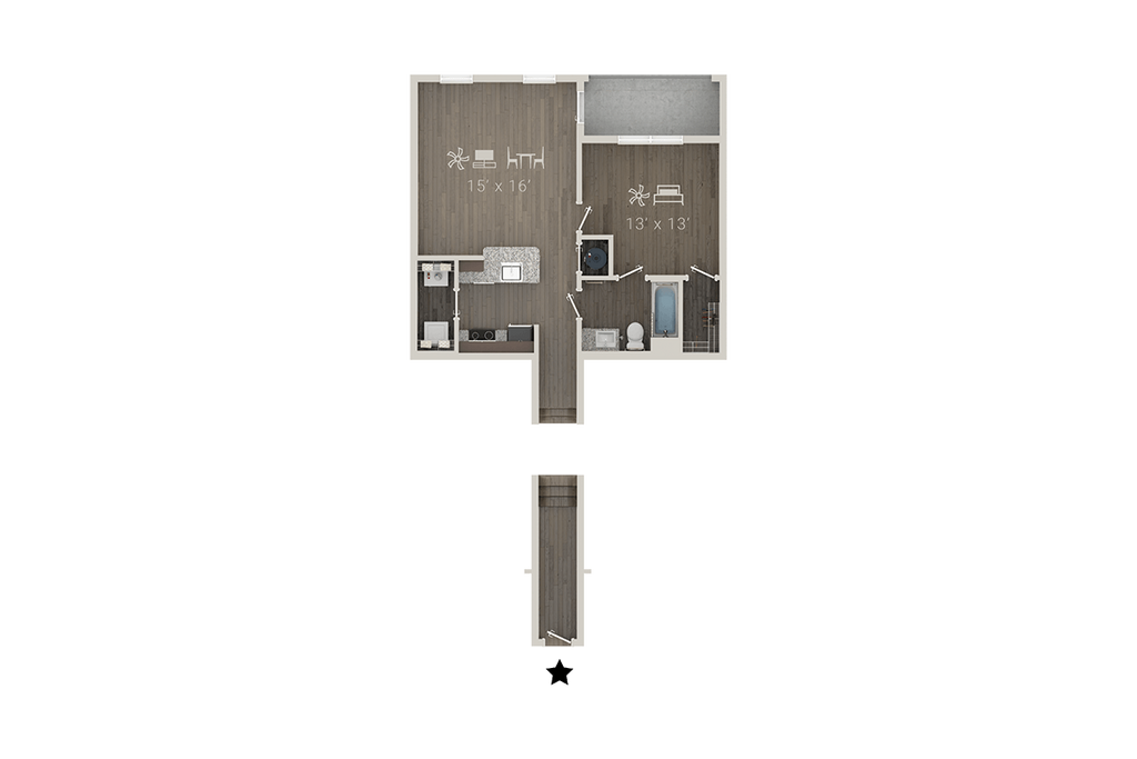 Modelo de apartamento: A2 + DenDesde $1,4691 Dormitorio, 1 Baño, 1005 sq ftDisponible Ahora![]()
