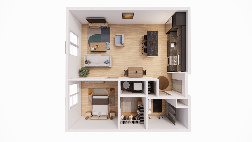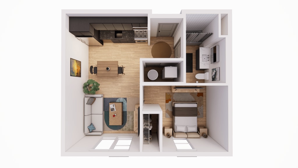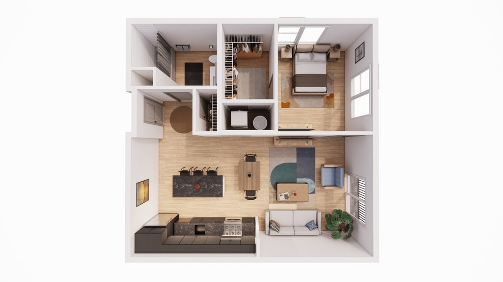 1 Dormitorio, 1 Baño, 802 pies²Disponible AhoraGalería del Modelo