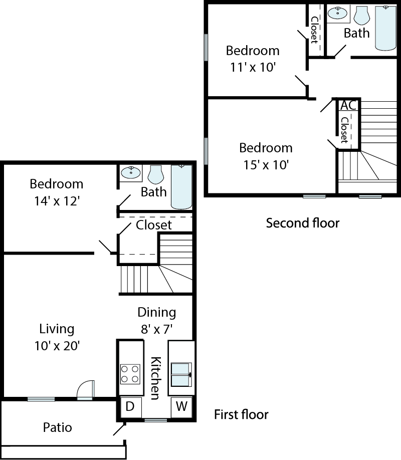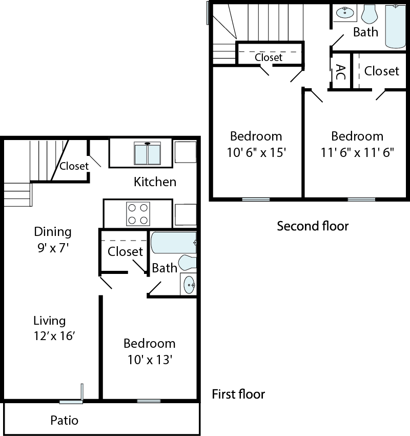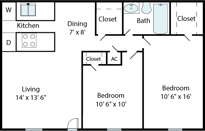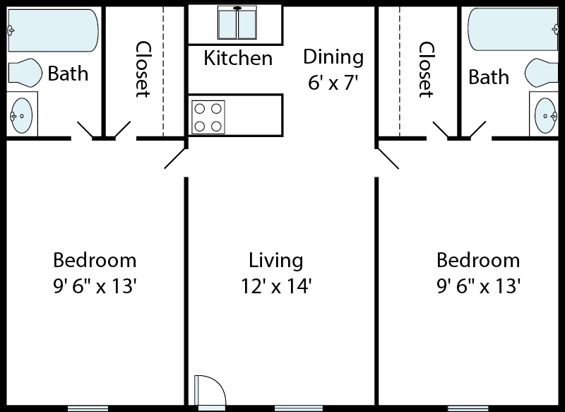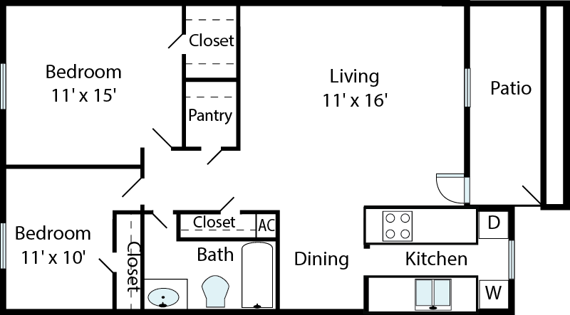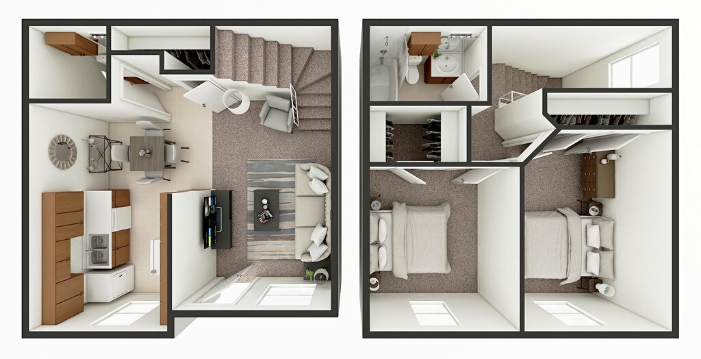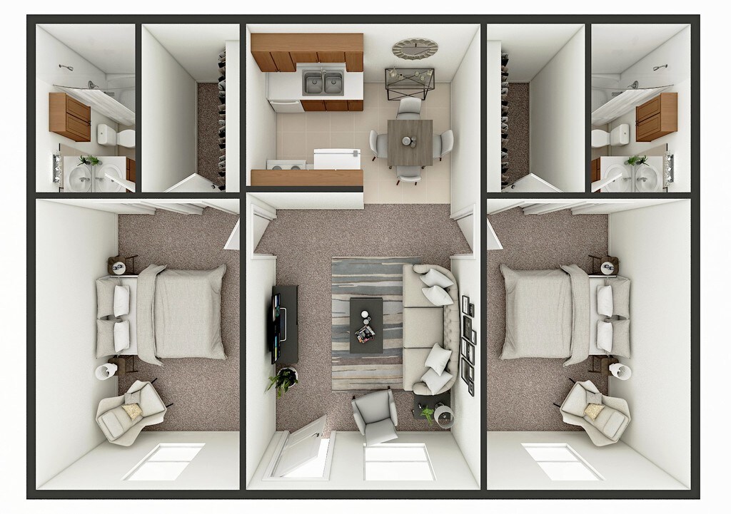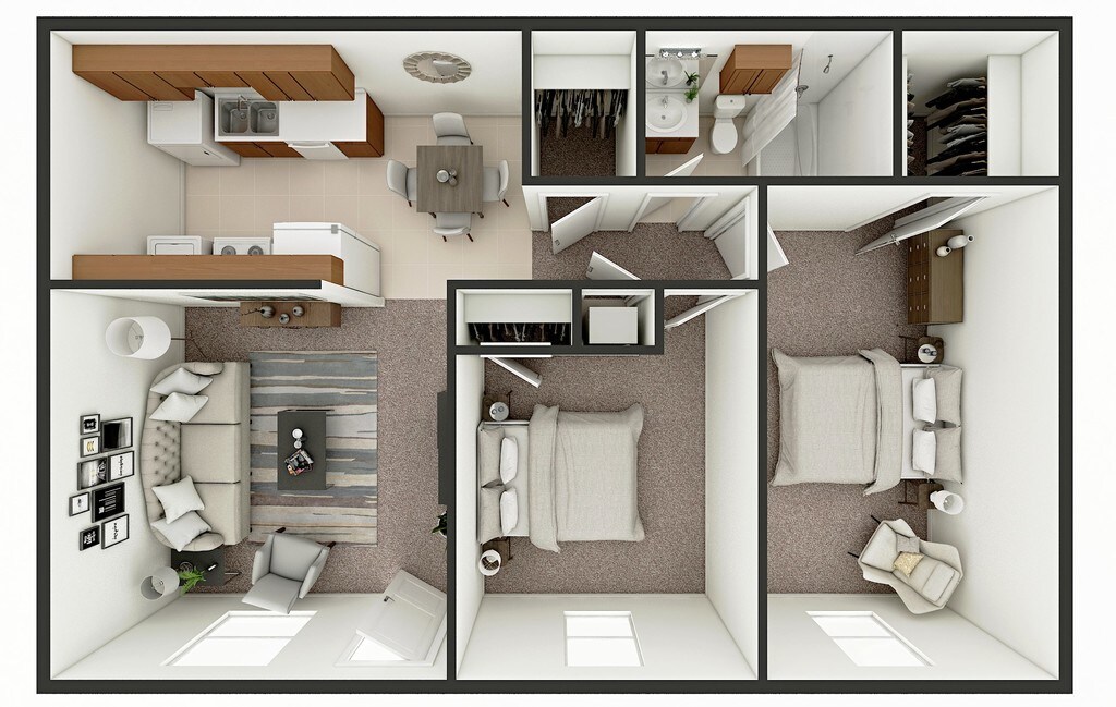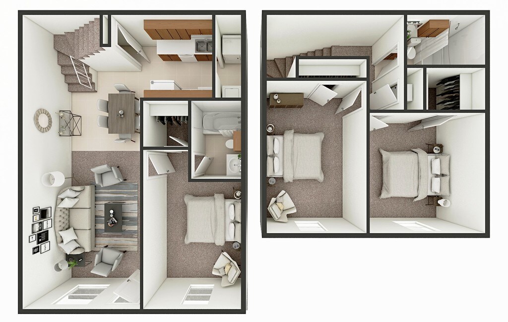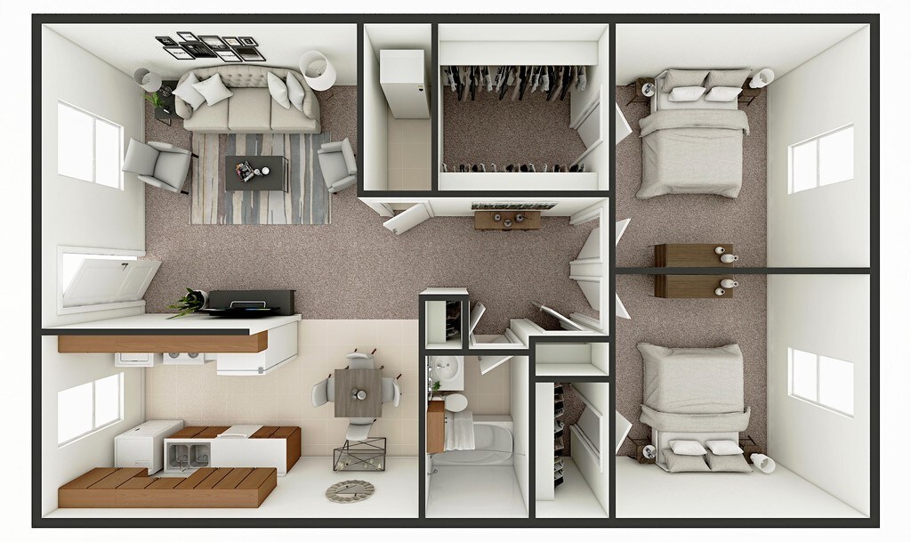 2 Dormitorios, 1 Baño, 875 pies²Disponible AhoraGalería del Modelo
