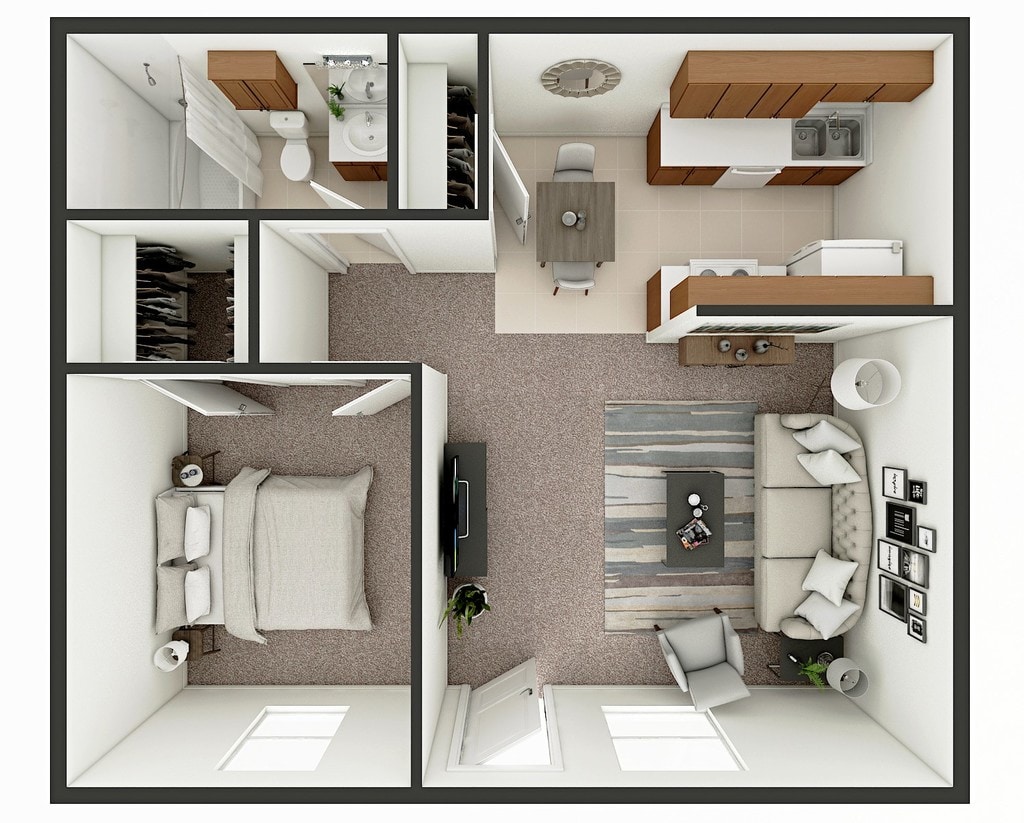 1 Dormitorio, 1 Baño, 528 pies²Disponible AhoraGalería del Modelo