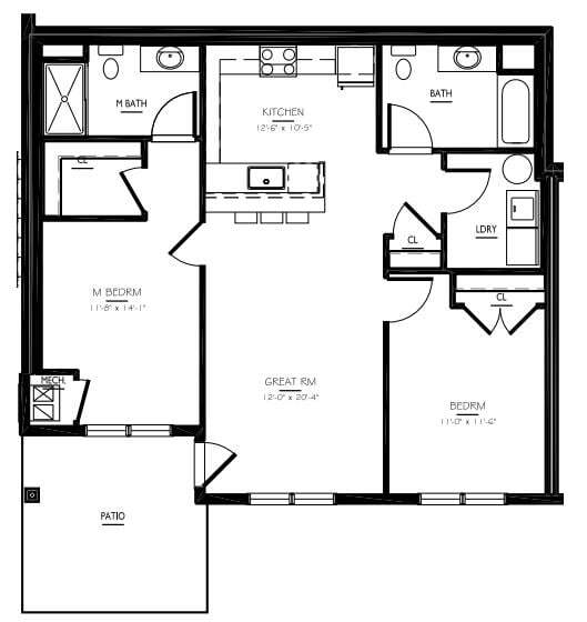 1 Dormitorio, 1 Baño, 730 pies²Disponible AhoraGalería del Modelo