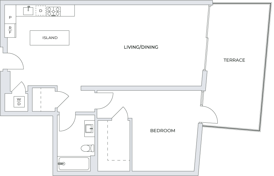 1 Dormitorio, 1 Baño, 781-785 pies²Disponible AhoraGalería del Modelo