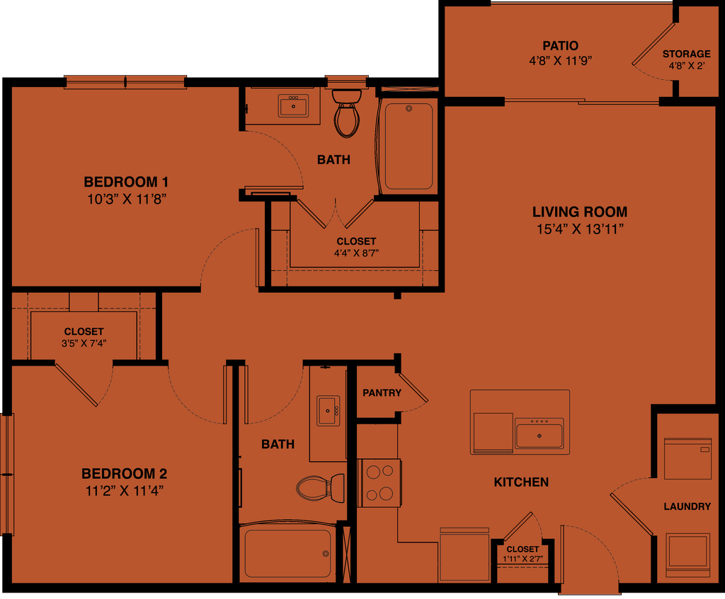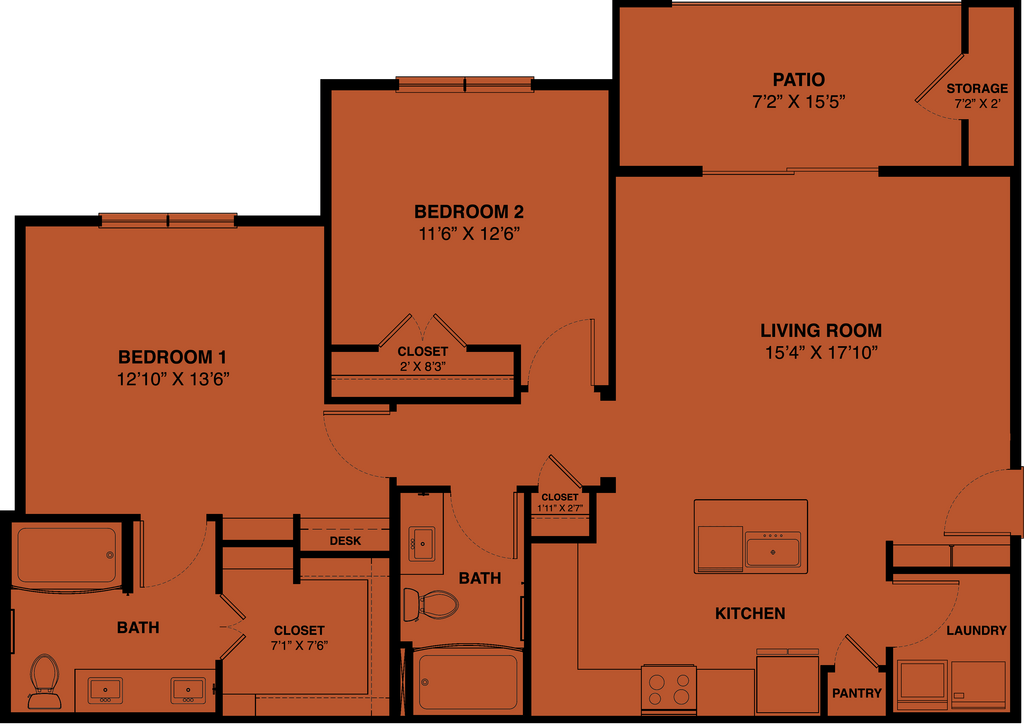 Modelo de apartamento: A2 AccessibleDesde $1,2141 Dormitorio, 1 Baño, 659 sq ftDisponible Ahora![]()