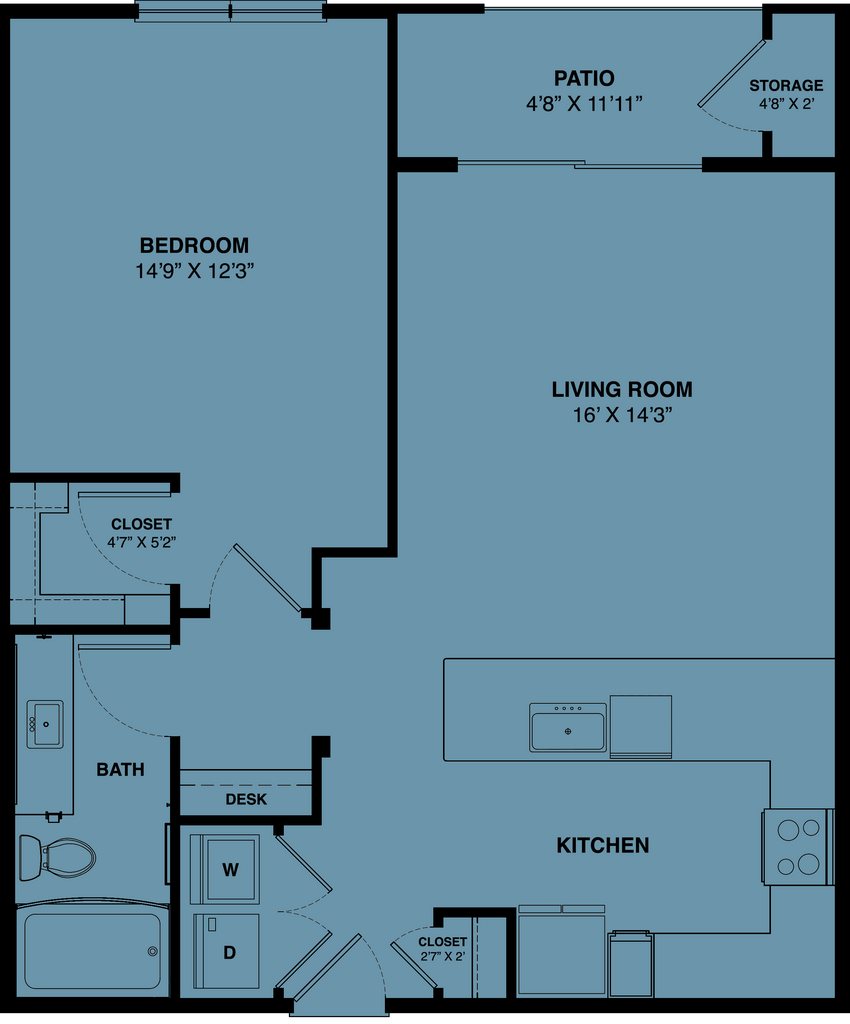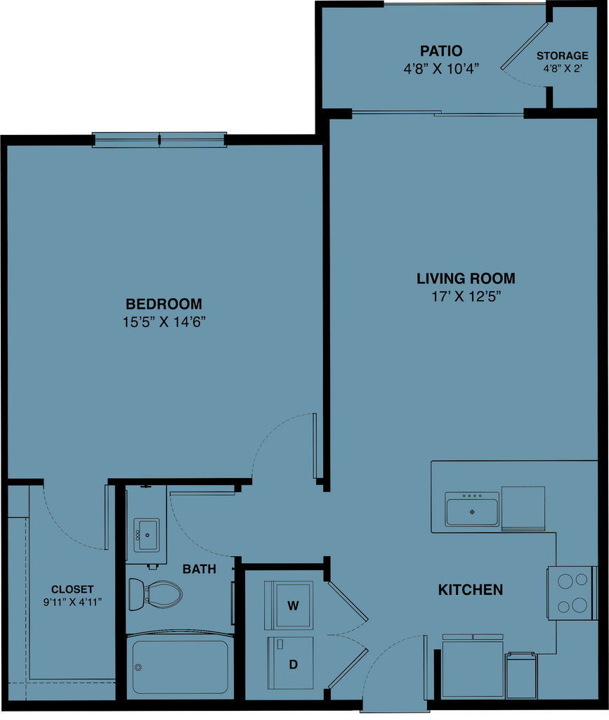 Estudio, 1 Baño, 560 pies²Disponible AhoraGalería del Modelo