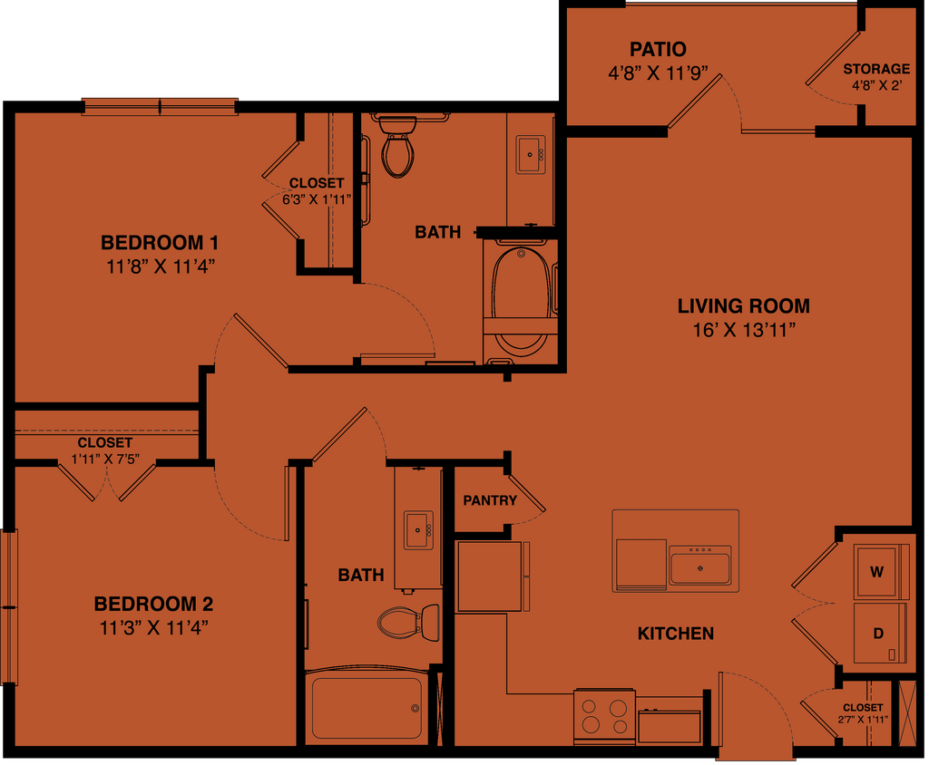 1 Dormitorio, 1 Baño, 619 pies²Disponible AhoraGalería del Modelo