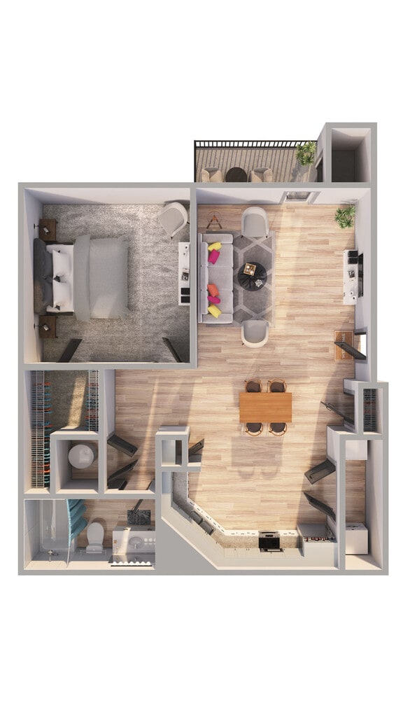 1 Dormitorio, 1 Baño, 751 pies²Precio Mensual TotalDisponible AhoraGalería del Modelo