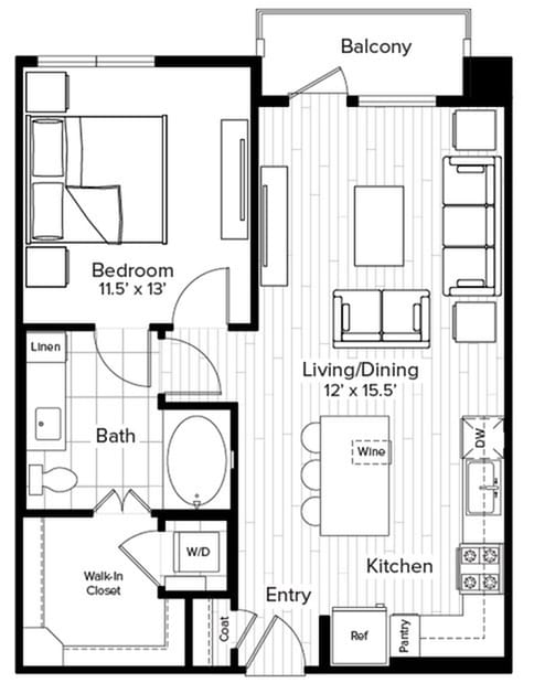 1 Dormitorio, 1 Baño, 660 pies²Disponible AhoraGalería del Modelo
