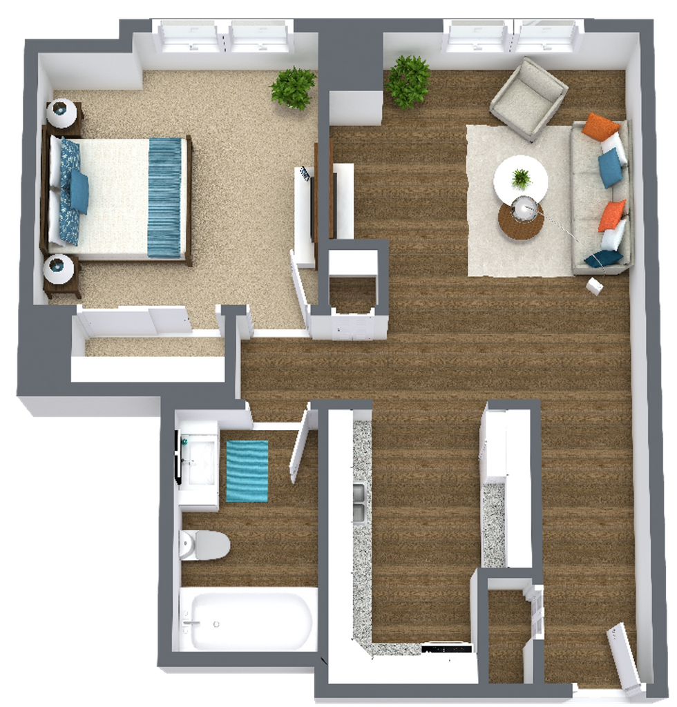 Modelo de apartamento: PRK S1Desde $850Estudio, 1 Baño, 495 sq ftDisponible Ahora![]()