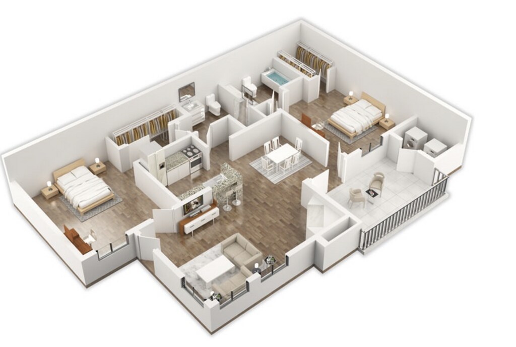 1 Dormitorio, 1 Baño, 671 pies²Disponible AhoraGalería del Modelo