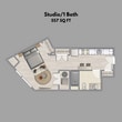 Studio - Plano 1 Unidad de apartamento: 2110-516Modelo de apartamento: Studio$1,450Estudio, 1 Baño, 557 sq ftDisponible AhoraStudio