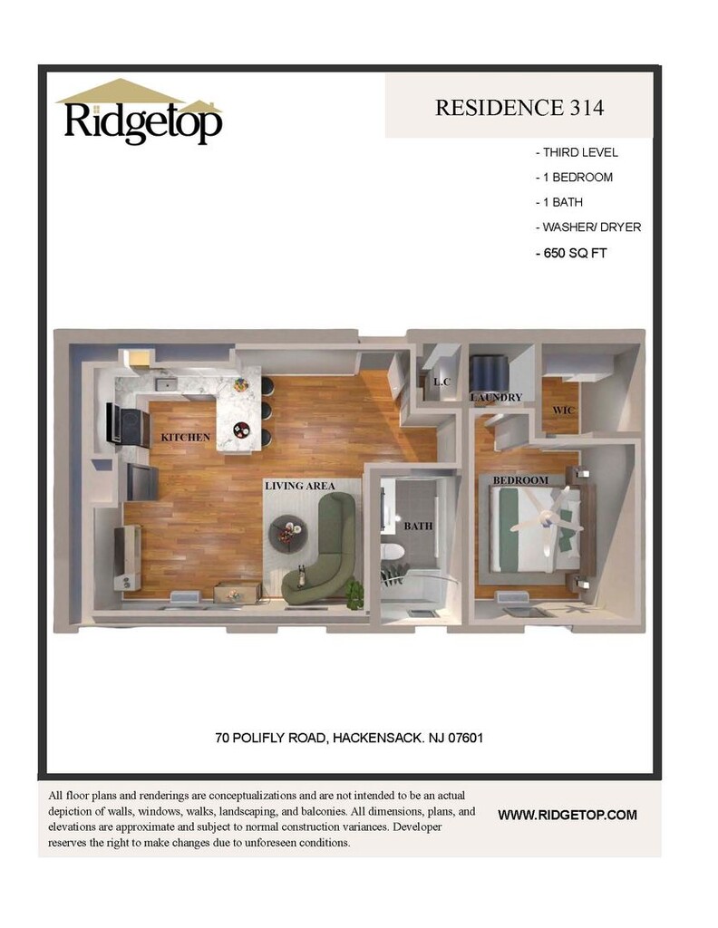 1 Dormitorio, 1 Baño, 650 pies²Disponible AhoraGalería del Modelo