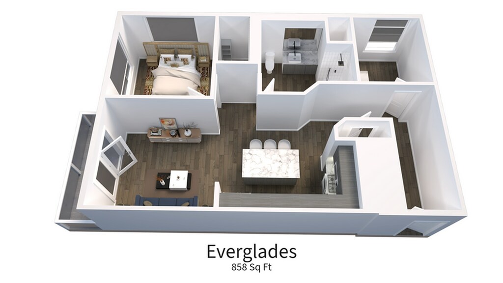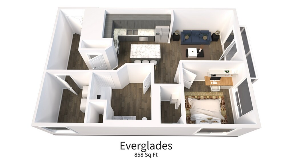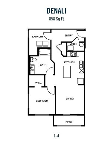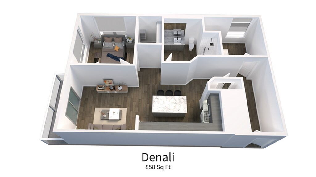 1 Dormitorio, 1 Baño, 858 pies²Galería del Modelo