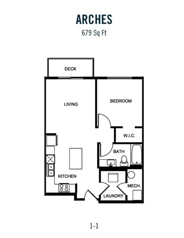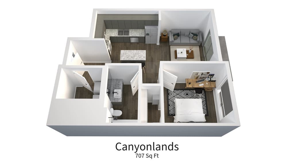 Arches - Plano 5 Unidad de apartamento: A-A212Modelo de apartamento: Arches$1,3491 Dormitorio, 1 Baño, 679 sq ftDisponible November 13, 2025Canyonlands
