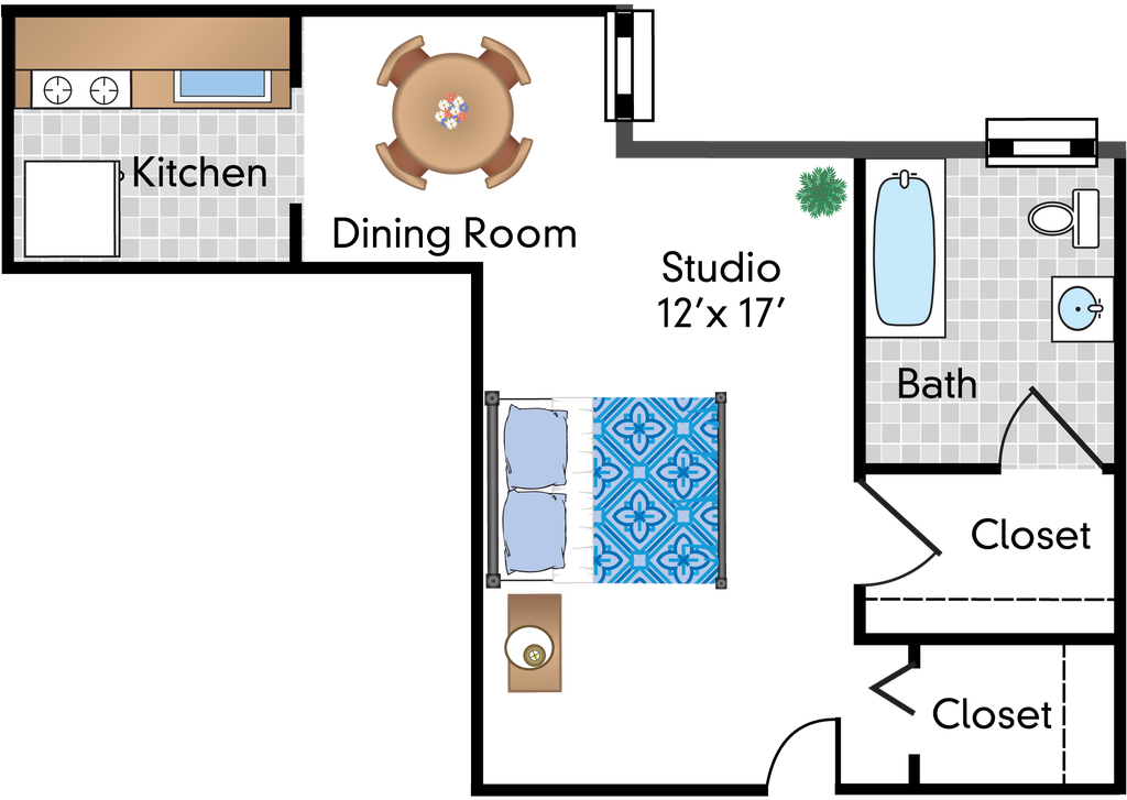 Estudio, 1 Baño, 461 pies²Disponible AhoraGalería del Modelo
