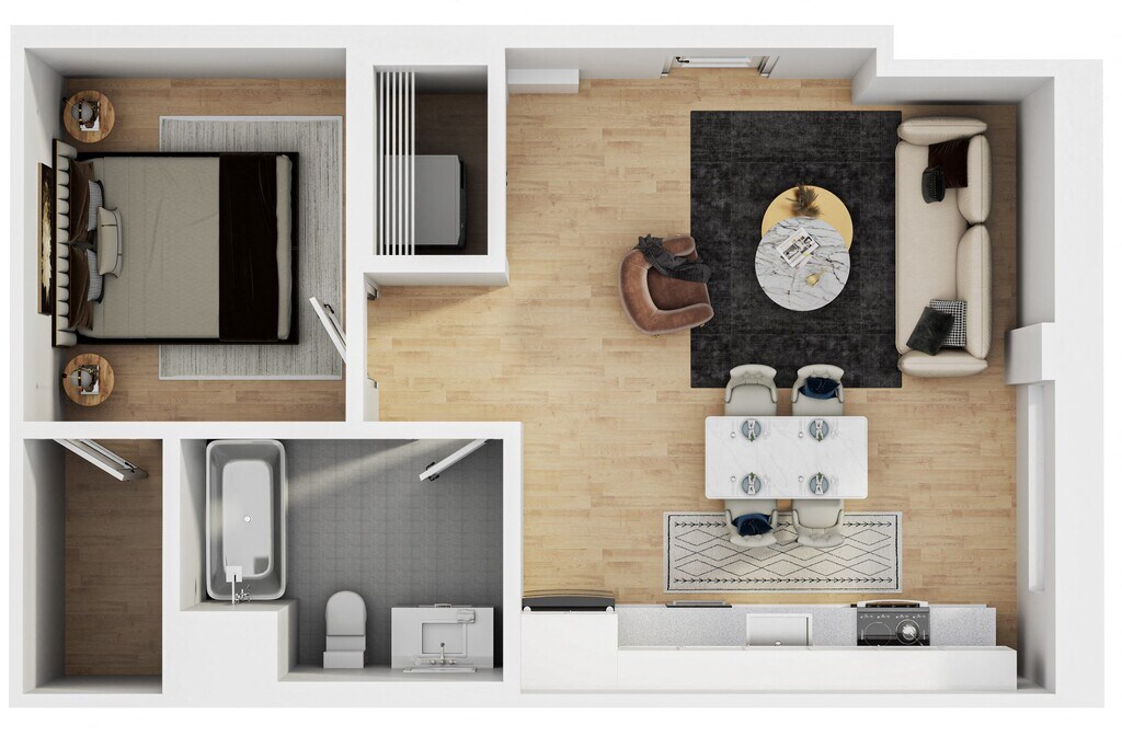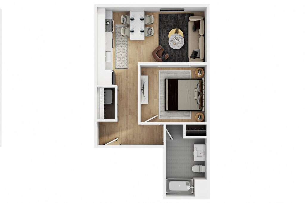 Modelo de apartamento: 118$1,1951 Dormitorio, 1 Baño, 567 sq ftDisponible June 7, 2026![]()