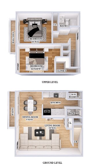 Modelo de apartamento: 2 Bed 1 1/2 Bath TownhouseLlame para Precios2 Dormitorios, 1.5 Baños, 1200 sq ftNo Disponible![]()