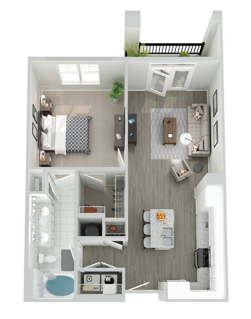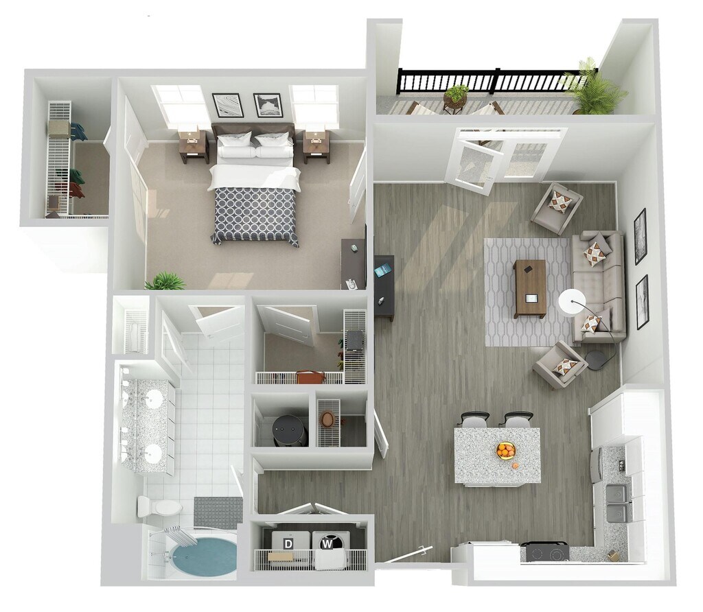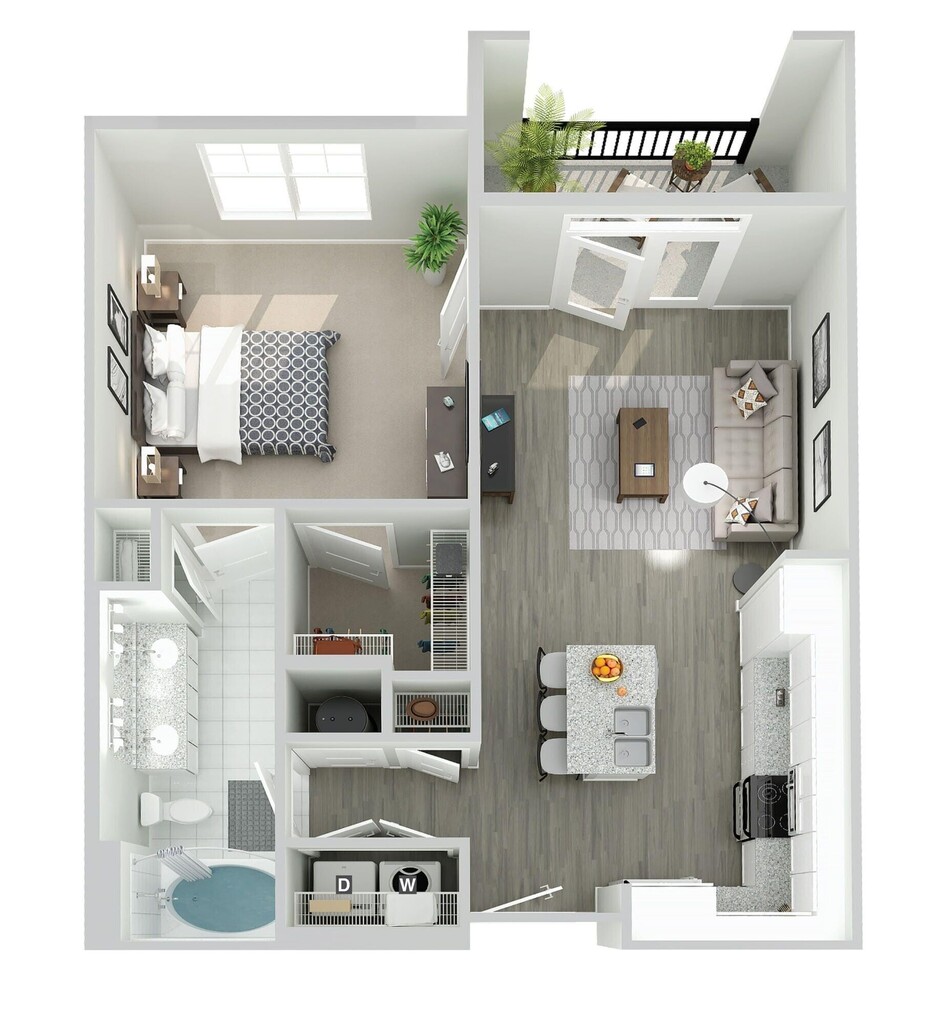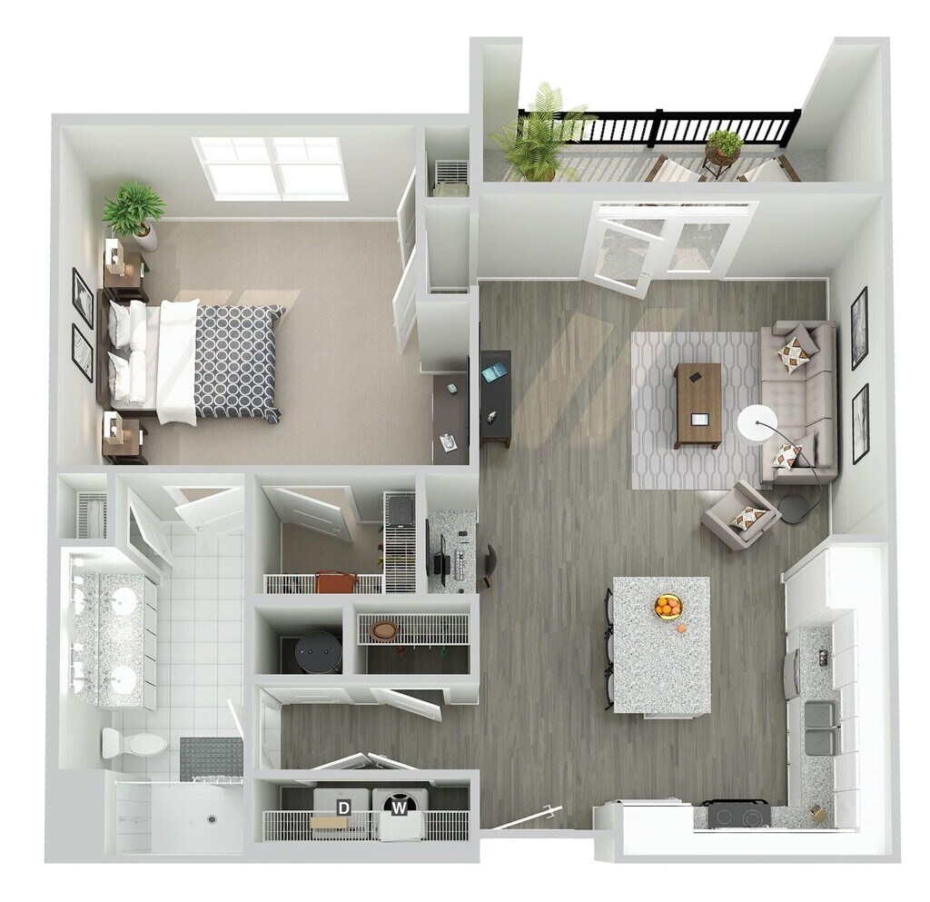 1 Dormitorio, 1 Baño, 761 pies²Disponible AhoraGalería del Modelo