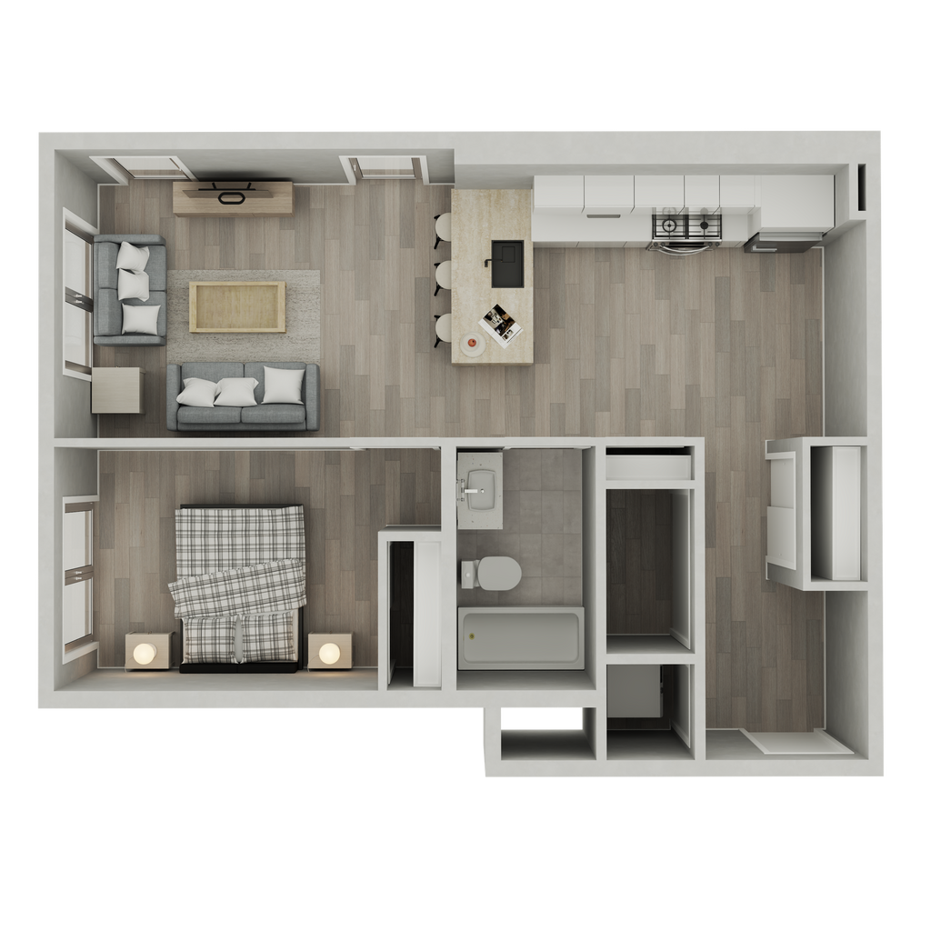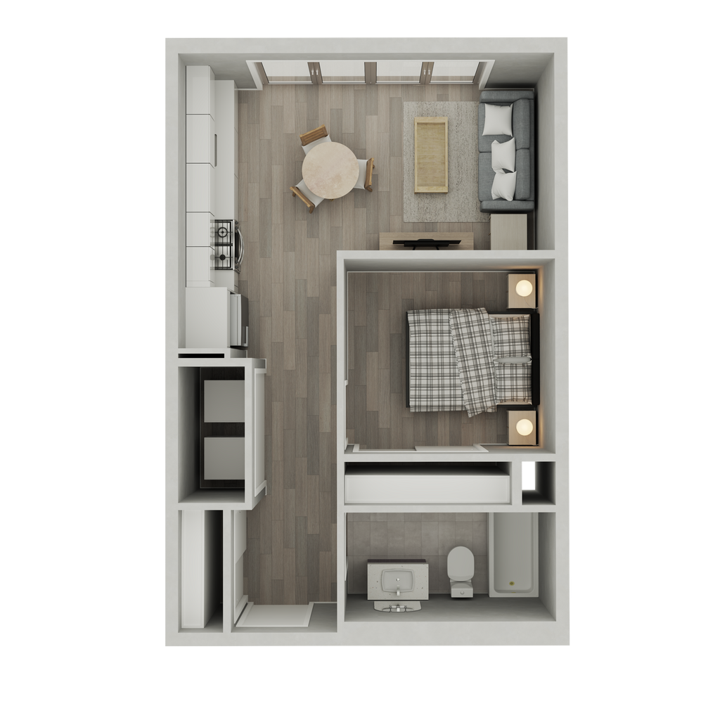 1 Dormitorio, 1 Baño, 470 pies²Disponible AhoraGalería del Modelo