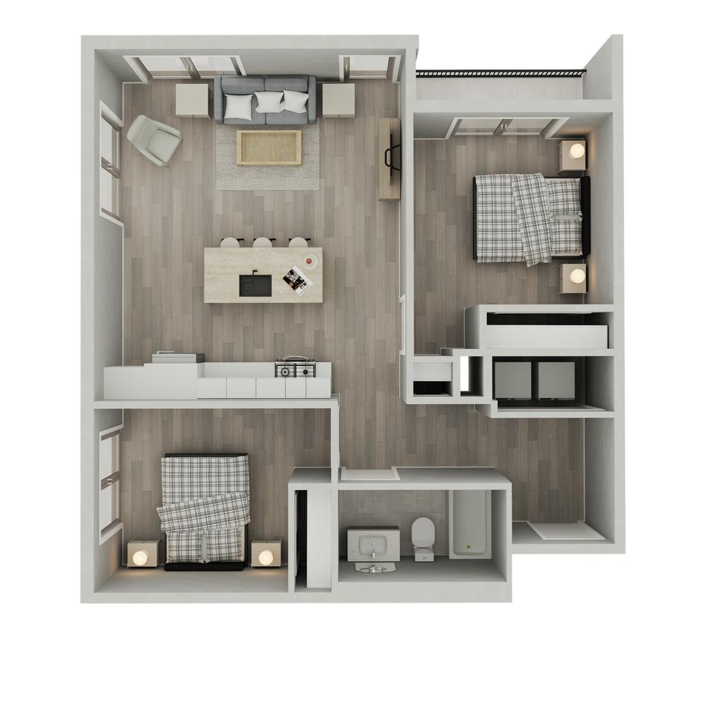 1 Dormitorio, 1 Baño, 518-521 pies²Disponible AhoraGalería del Modelo